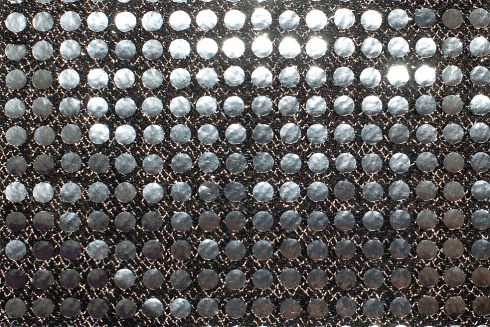 Auf dem leicht transparenten, mit schimmernden Lurexfäden durchzogenen Trägergewebe sind die glitzernden Pailletten befestigt.