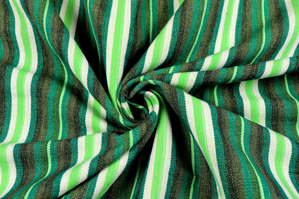 Dieser Baumwollstoff mit gewebten Streifen überzeugt durch sein zeitloses Design und seine vielseitige Einsetzbarkeit. Die bunten Webstreifen verleihen dem Stoff eine strukturierte Optik und machen ihn zu einer idealen Grundlage für Nähprojekte, bei denen Fröhlichkeit und schöne Farben im Vordergrund stehen.