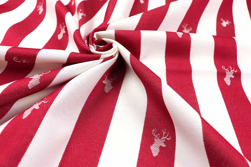 Diesen Landhaus-Jacquard ziert ein rustikaler Mix aus Streifen und Hirschen.