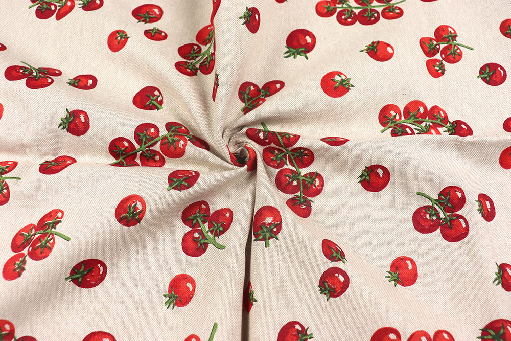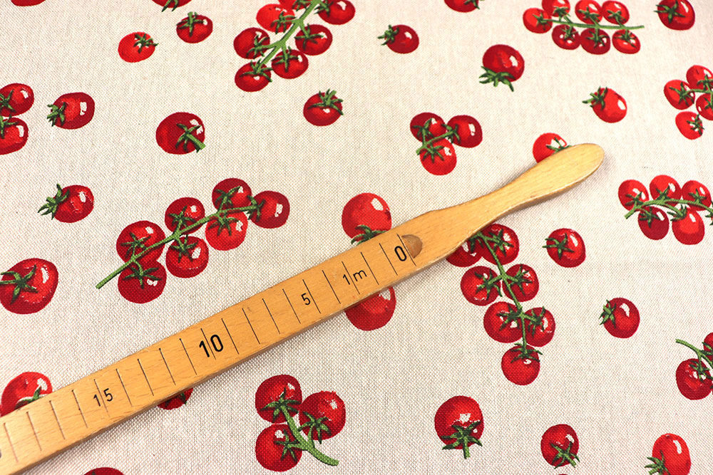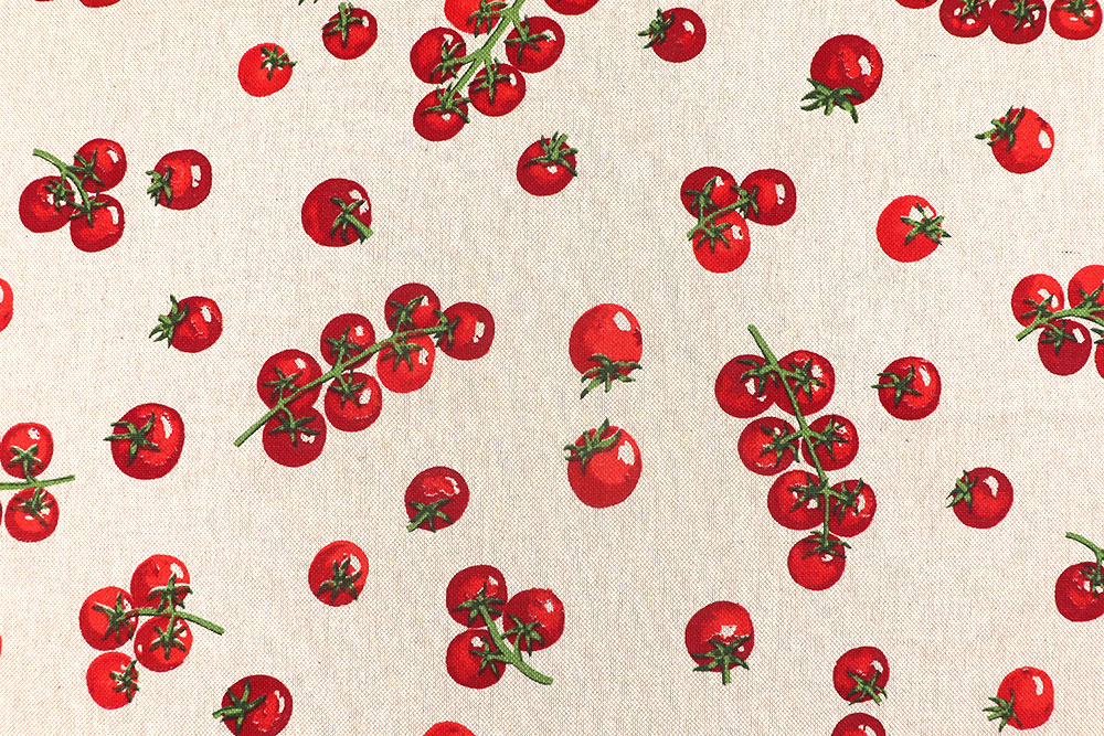 Frisch aus dem Garten auf den Stoff gebracht: Dieser Dekostoff in natürlicher Leinenoptik zeigt ein charmantes Allover-Design aus kleinen, detailreichen Tomaten. Die matte Oberfläche und die leicht strukturierte Optik verleihen dem Stoff einen authentischen, rustikalen Look mit viel Natürlichkeit.