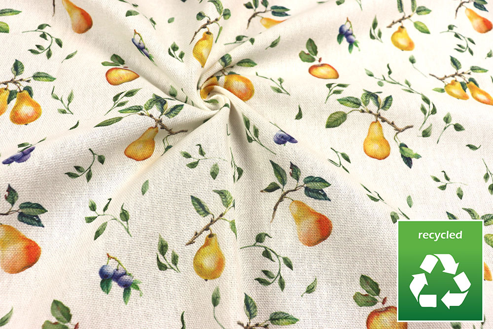 Dieser Dekostoff vereint natürliche Baumwolle mit nachhaltigen Recyclingfasern und begeistert mit einem frischen, sommerlichen Look.