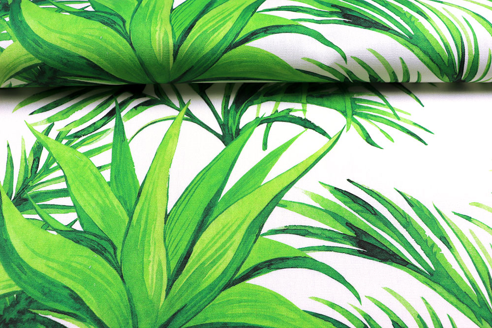 Er lässt sich leicht verarbeiten – nähen, kleben oder tackern sind problemlos möglich. Der brillante Digitaldruck sorgt dafür, dass das tropische Motiv gestochen scharf und farbintensiv erscheint.