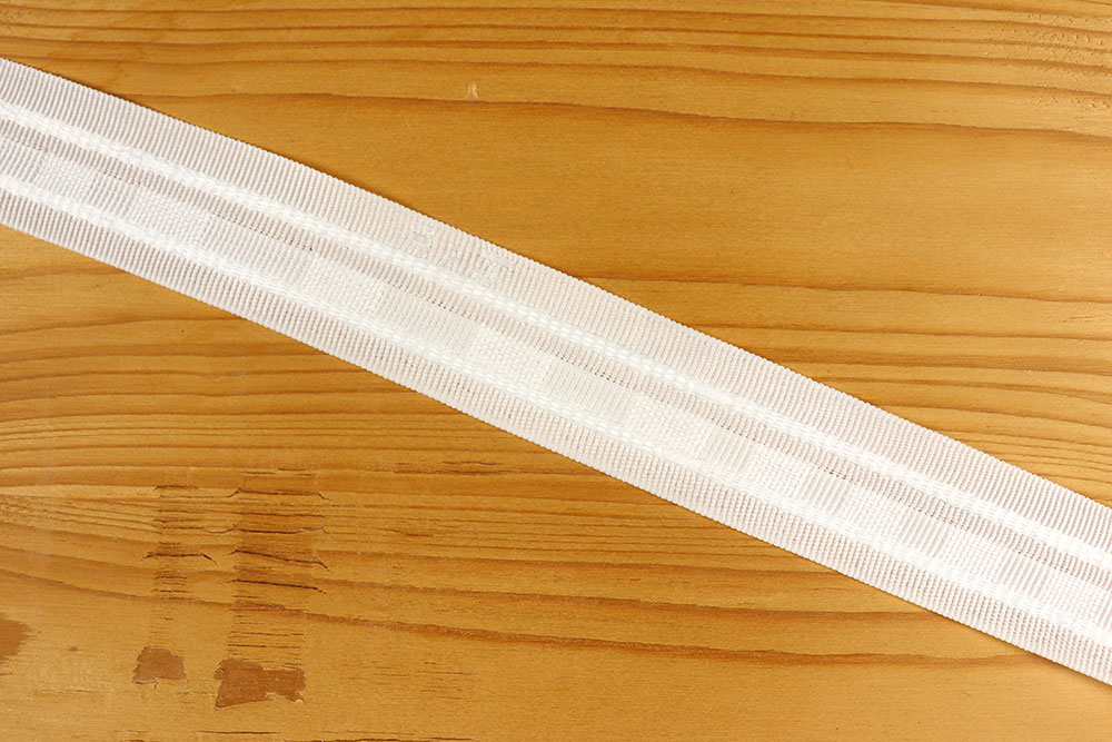 Gardinenband 3er-Falte, transparent, ca. 26 mm breit, 2-fache Vorhangstoffmenge im Verhältnis zur Fensterbreite.