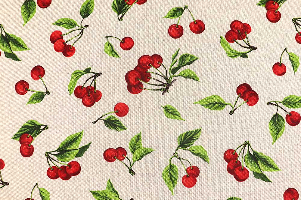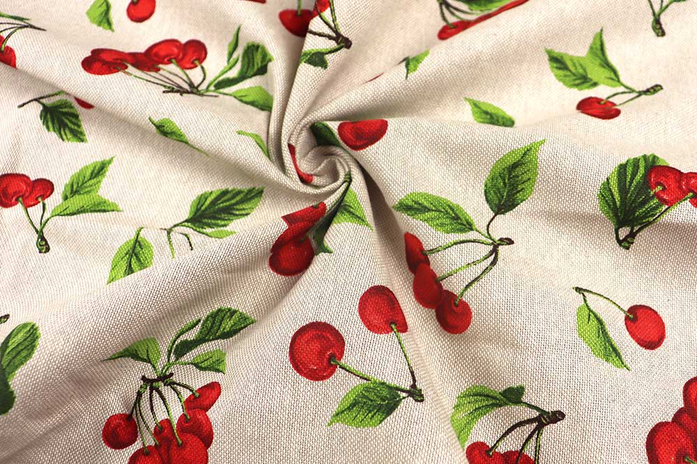 Sommerliche Leichtigkeit und genau die richtige Portion Gemütlichkeit kombiniert dieser Dekostoff in Leinenoptik mit verspieltem Kirsch-Motiv. Der Materialmix mit hohem Baumwollanteil ist weich und hautsympathisch. Perfekt geeignet vielfältige Projekte – sei es für Kissen, Tischdecken, Vorhänge oder Accessoires.