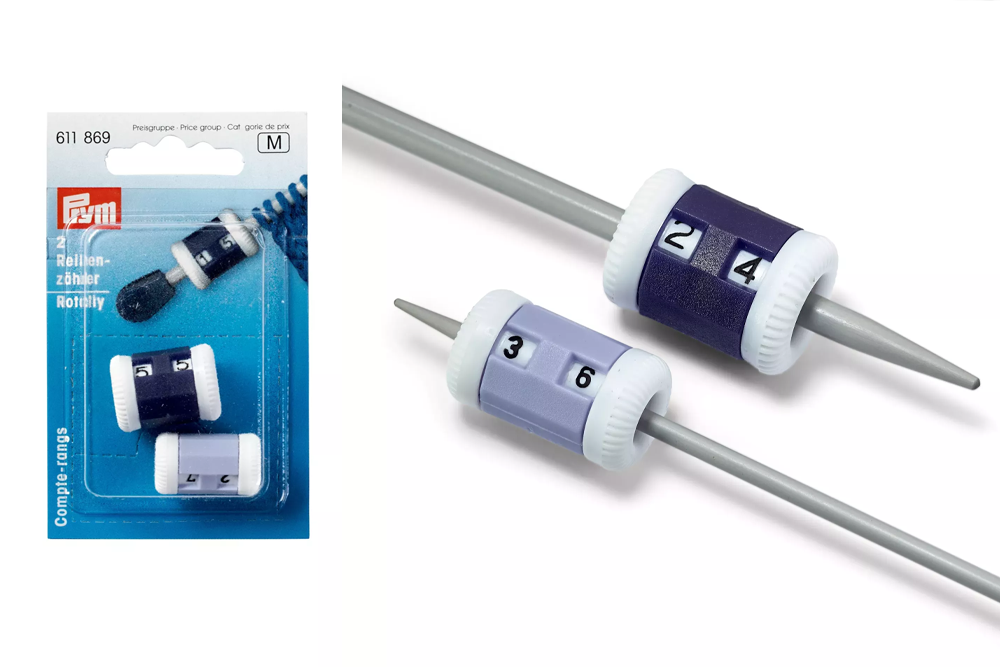 Der Reihenzähler für dünne und dicke Stricknadeln ist ein praktischer Helfer für präzises Arbeiten beim Stricken. Er wird einfach auf die Stricknadel gesteckt und bis zum Nadelende durchgeschoben. So sitzt er sicher direkt an der Strickarbeit und die gestrickten Reihen lassen sich bequem mitverfolgen.