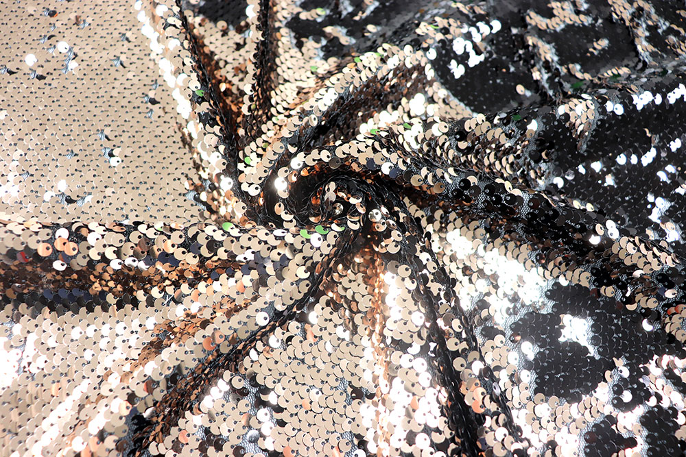 Pailletten in Schwarz und Platin besetzt. Da diese einseitig aufgebracht