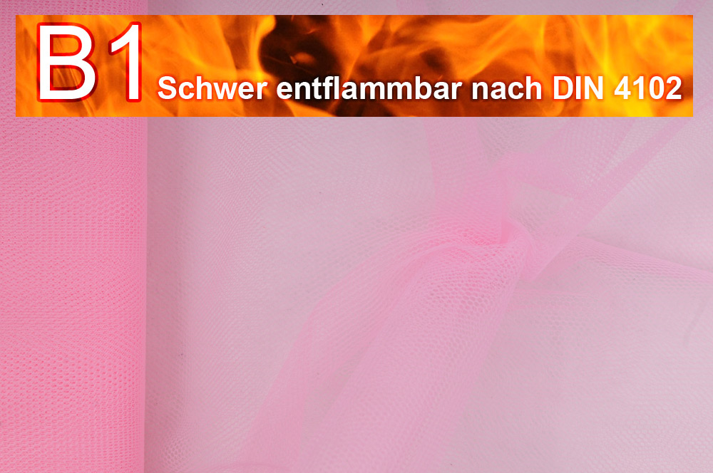 Klassischer Tüll mit zusätzlicher „schwer entflammbar“-Ausrüstung. Das feine, transparente Gewebe mit der netzartigen Struktur hat genügend Stand, um Volumen zu bringen. Auch für Bastelarbeiten wird es gerne verwendet. Ein preisgünstiges Material für Bekleidung und Dekoration - hier in vielen Farben erhältlich.