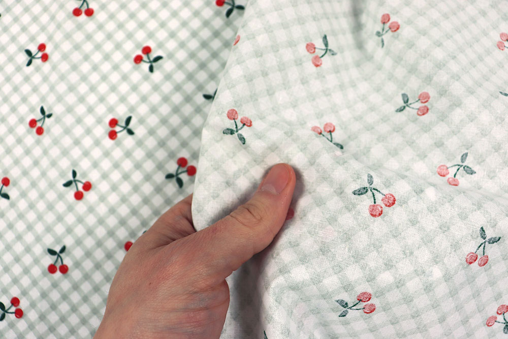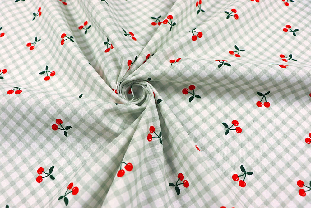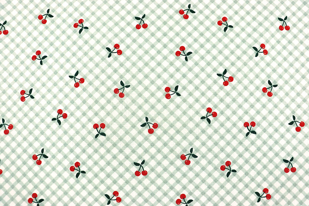 Wenn Sie frische Muster lieben und Ihren Nähprojekten eine verspielte, zugleich klassische Ausstrahlung verleihen möchten, ist dieser karierte Baumwollstoff mit Kirschen genau das Richtige.