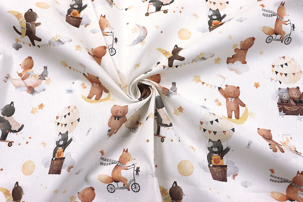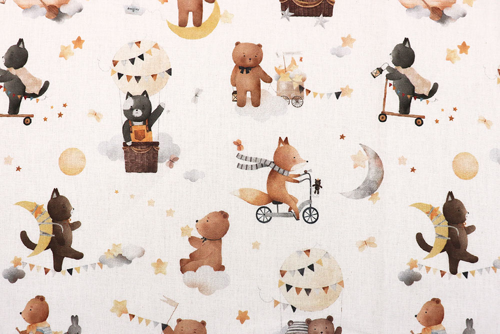 Niedliche Babytiere zieren diese feine Webware aus 100% Baumwolle.