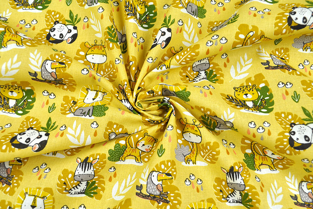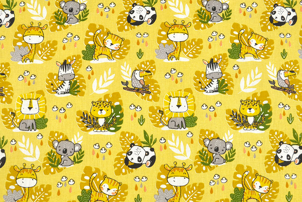 Zebra, Löwe, Giraffe und Co. tummeln sich auf dieser Baumwolle.