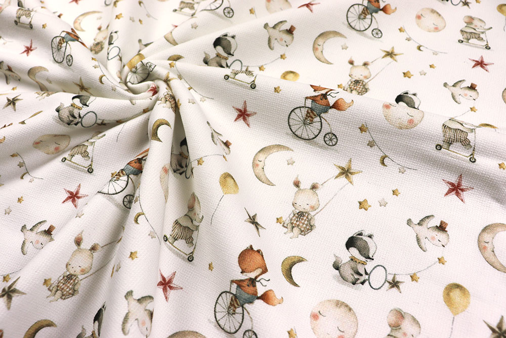 Dieser herrlich weiche, dicke Stoff kombiniert ein verspieltes Baby-Tier-Motiv mit einer angenehm weichen Frottee-Rückseite. Die dekorative Vorderseite in sanften, kindgerechten Farben trifft auf flauschigen, leicht saugfähigen Frottee und macht den Stoff ideal für Baby- und Kinderprojekte mit hohem Kuschelfaktor.