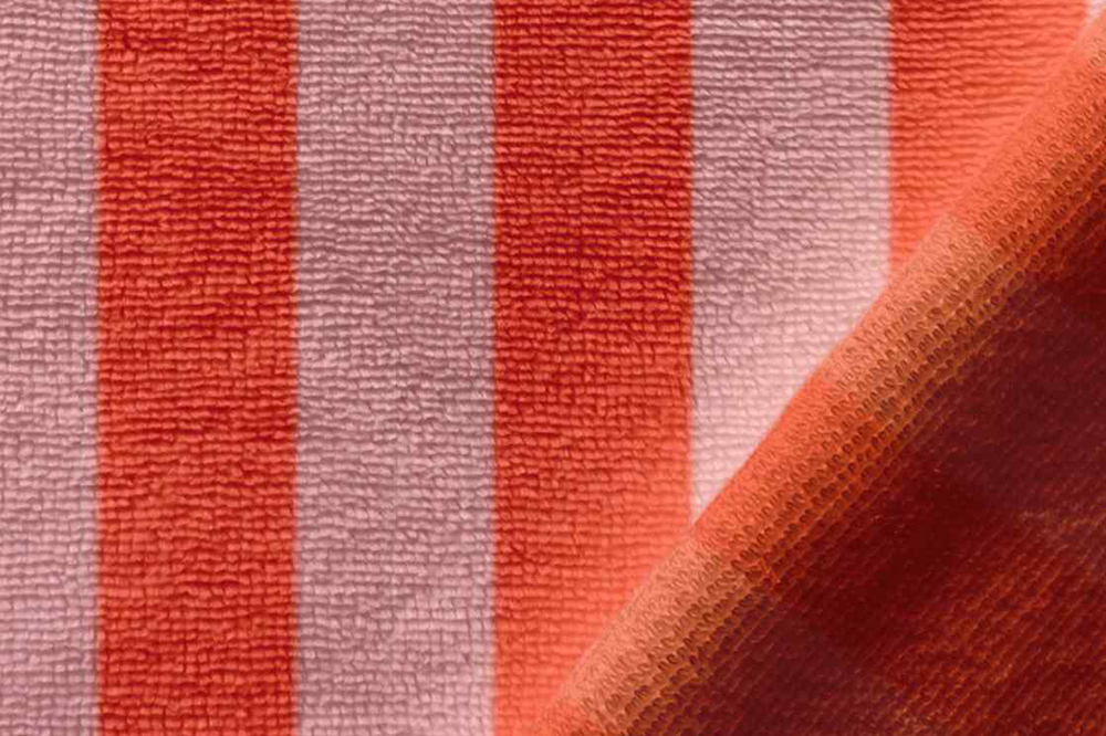 Der gestreifte Frottestoff eignet sich ideal für Handtücher, Waschlappen, Bademäntel oder Badetücher. Auch für Babyartikel wie Kapuzenhandtücher, Wickelauflagenbezüge oder Lätzchen ist er bestens geeignet. Durch die Kombination aus Streifenmuster und funktionalen Eigenschaften ist dieser Stoff vielseitig einsetzbar und praktisch zugleich.