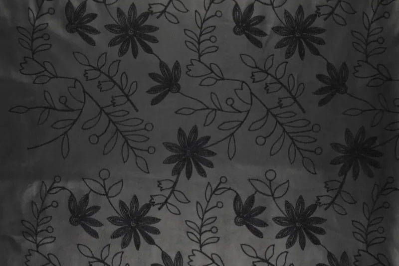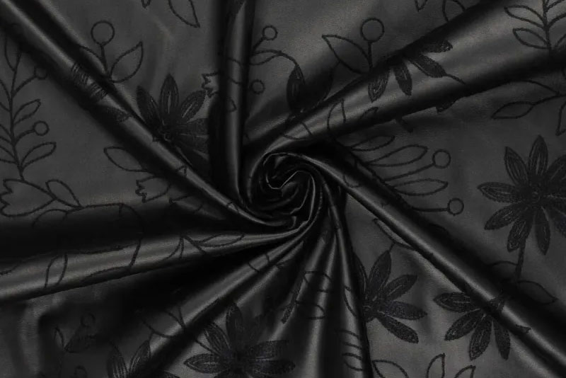 Elegantes Kunstleder in tiefem Schwarz mit feiner floral bestickter Oberfläche. Das Material verbindet eine wertige Optik mit angenehmer Haptik und ist ideal für Bekleidung, Taschen, Accessoires und dekorative Projekte. Die filigrane Stickerei sorgt für einen stilvollen Look und macht jedes Nähprojekt zum besonderen Hingucker.