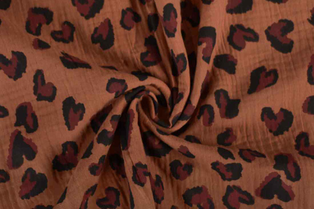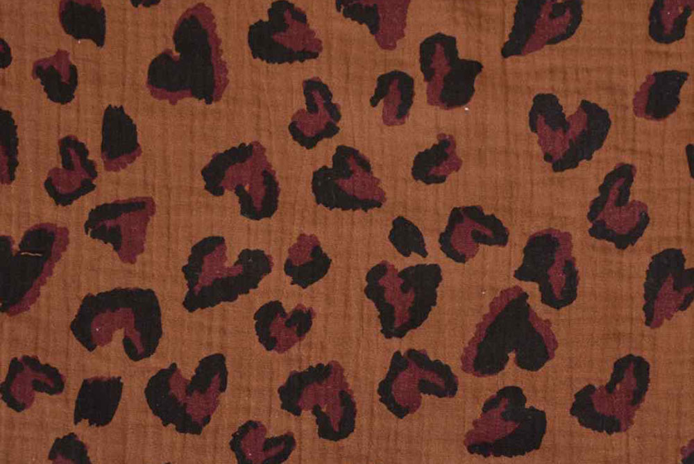 Herzen in Leo-Optik zieren diesen schönen Musselinstoff. Bei Double Gauze werden zwei Lagen Musselin