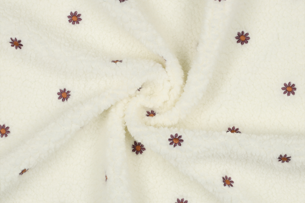 Zum MusterserviceDieser Sherpa Fleece präsentiert ein feines Streublumen-Design, das durch zarte Stickereien in warmen Farbtönen hervorgehoben wird. Die kleinen Blüten auf hellcremefarbenem Grund verleihen dem Stoff eine detailreiche, elegante Wirkung und unterstreichen seinen charmanten Handmade-Look.