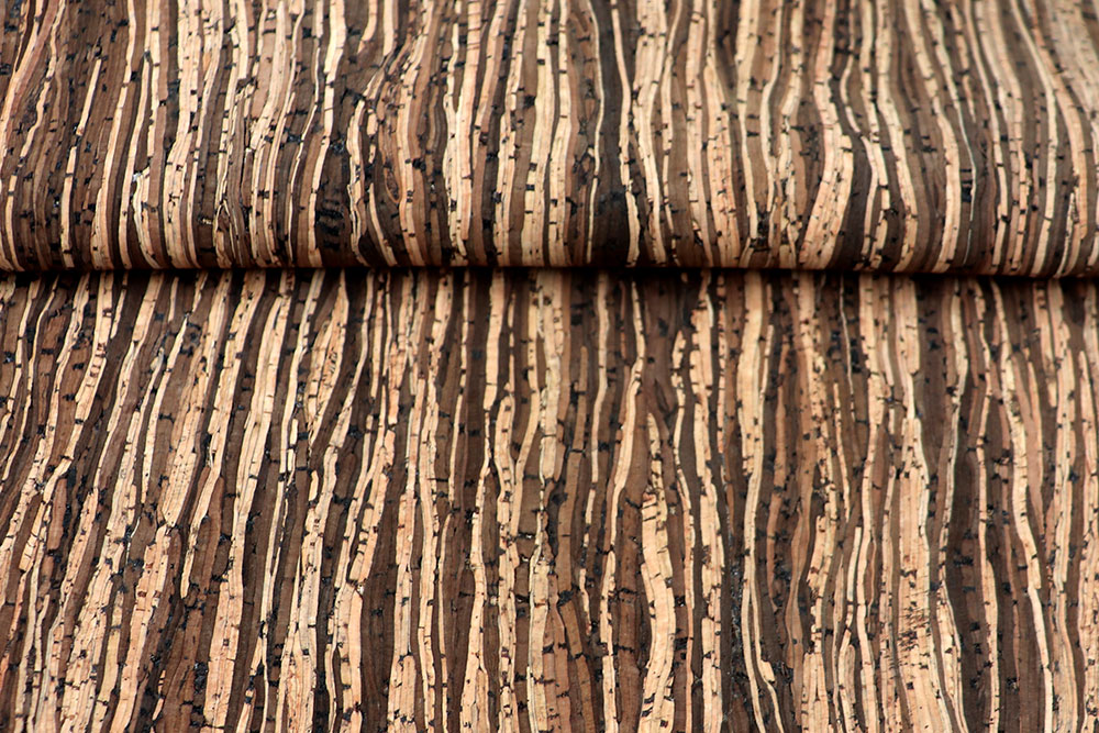 Korkstoff mit natürlicher Holzoptik – modern, nachhaltig und vielseitig einsetzbar. Die charakteristische Struktur verleiht jedem Stück eine individuelle Optik und macht jede Kreation zu einem Unikat.