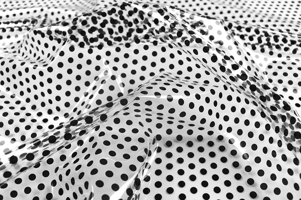 Dieser transparente PU-Folienstoff kombiniert wasserfeste Funktion mit modischem Statement. Das schwarze Tupfen-Muster verleiht der glänzenden, glatten Oberfläche einen edlen und zugleich auffälligen Charakter. Flexibel und strapazierfähig, eignet er sich perfekt für kreative DIY-Ideen und trendige Fashion-Projekte.