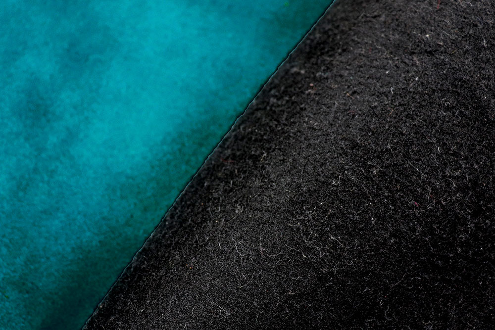 Widerstandsfähiger Möbelstoff, kaschiert mit dicker schwarzer Fleeceseite. Fleck- und wasserabweisend ausgerüstet.
