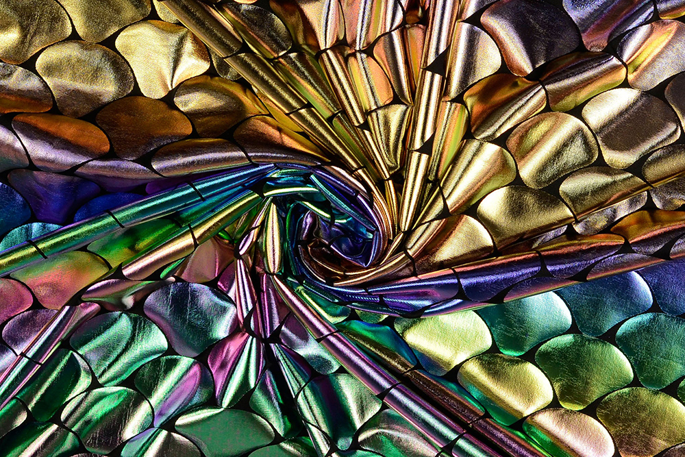 Dieser außergewöhnliche Tanzkleiderstoff ist wie geschaffen für Auftritte, die im Gedächtnis bleiben. Er kombiniert hohen Tragekomfort mit spektakulärem Glanz und macht jedes Outfit zum Highlight – ideal für Bühne, Tanz und Fasnacht. Das Design zeigt eine schuppenähnliche Struktur, die in intensiven, changierenden Farbverläufen schimmert.
