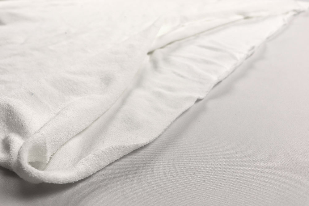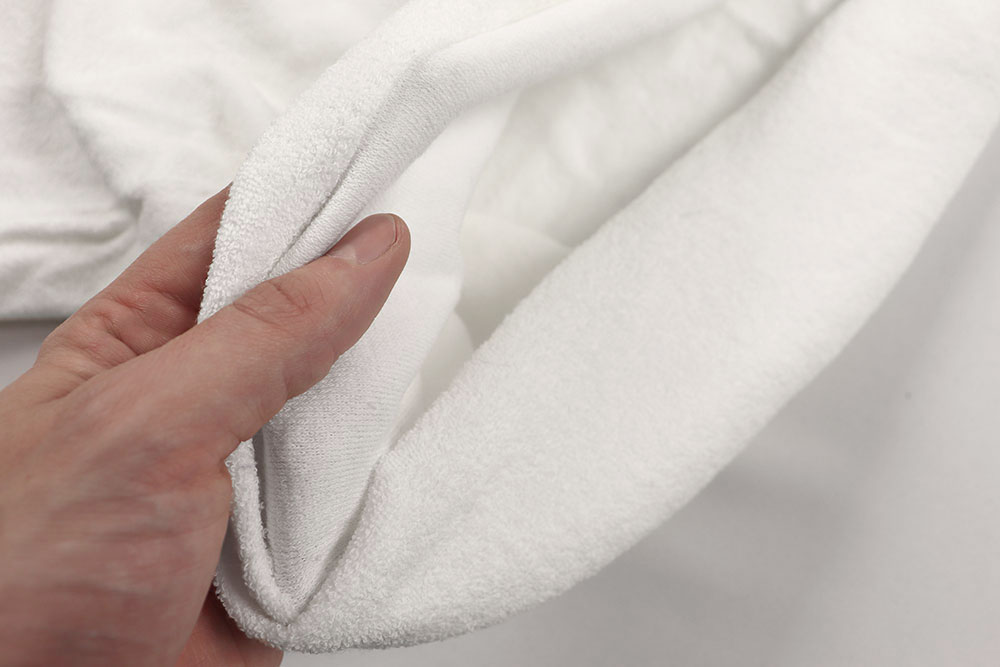 Das Material lässt sich leicht verarbeiten, ist sehr dehnbar und trägt sich besonders komfortabel. Typisch für Frottee besitzt es eine feine Schlingenstruktur, die angenehm auf der Haut liegt und Feuchtigkeit zuverlässig aufnimmt.