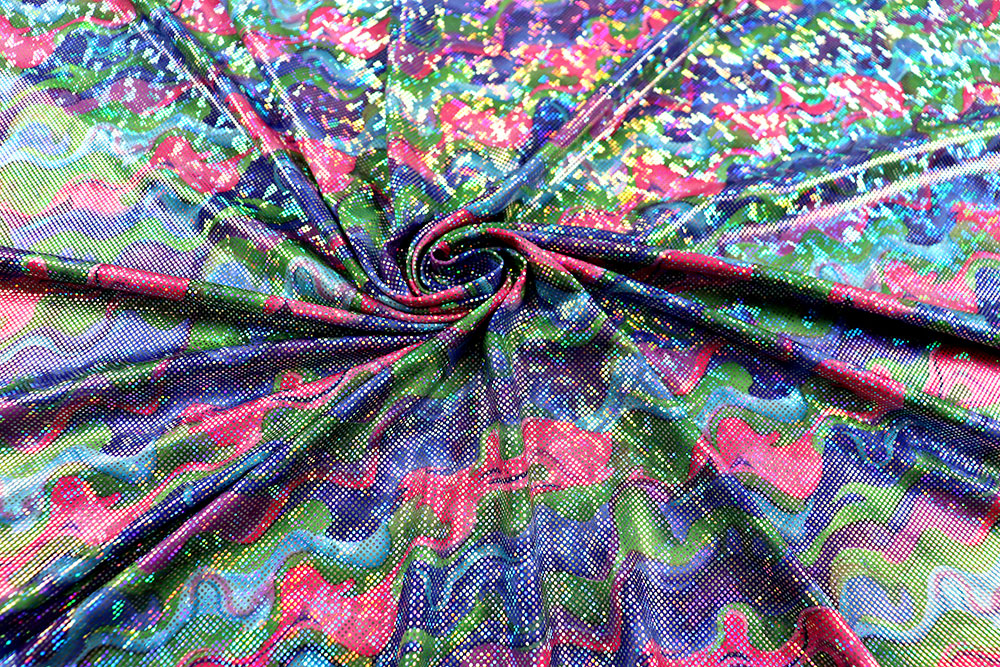 Die glitzernde Oberfläche dieses stretchigen Stoffes spielt mit dem