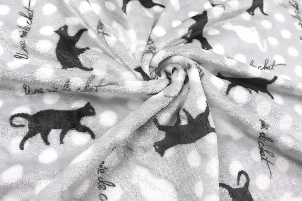 Mit diesem Soft-Knit-Kuschelstoff zieht pure Freude ins Nähzimmer ein! Das charmante Katzenmotiv mit kleinen Punkten sorgt für eine verspielte Optik, während die weiche Oberfläche zum Anfassen und Wohlfühlen einlädt. Perfekt geeignet für Kleidung, Accessoires oder kuschelige Heimtextilien.