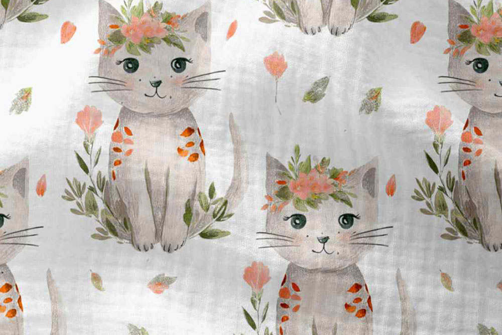 Ein detailreiches Motiv im Digitaldruck ziert diesen schönen Musselinstoff. Bei Double Gauze werden zwei Lagen Musselin