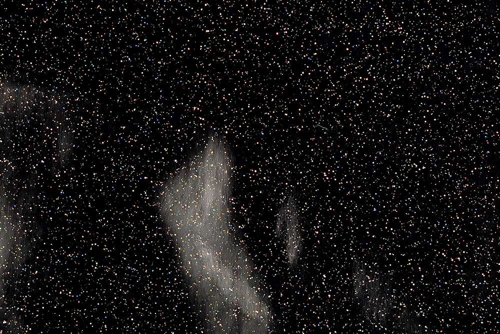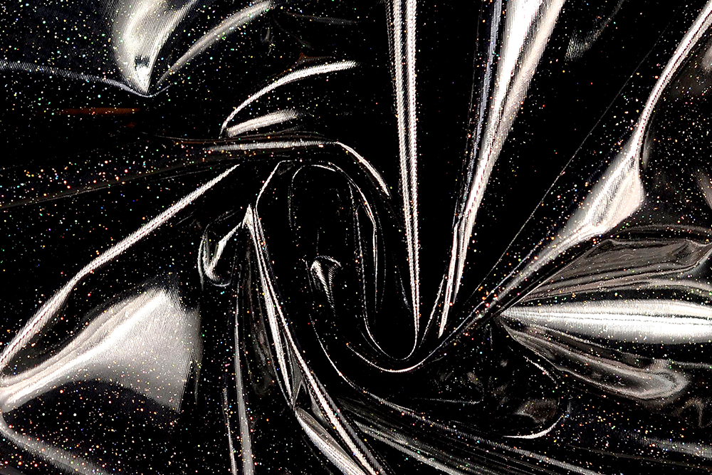 Dieser Lackstoff fasziniert mit einer tiefschwarzen, glänzenden Oberfläche, die mit unzähligen funkelnden Partikeln besetzt ist. Das glitzernde Muster erinnert an einen sternklaren Nachthimmel und verleiht jedem Projekt eine geheimnisvolle, glamouröse Ausstrahlung. Ganz gleich, ob als Mode-Statement oder Deko-Highlight – dieser Stoff setzt ein stilvolles, effektvolles Zeichen.