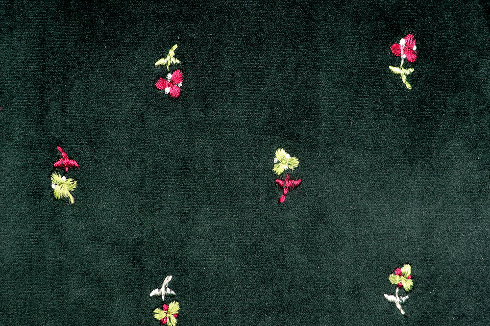 Dieser weiche Velours begeistert mit einem dunkelgrünen Grundton und fein eingestickten Blümchen, die dem Material eine verspielte, zugleich elegante Note verleihen. Die samtige Oberfläche sorgt für eine angenehme Haptik und einen schönen Fall. Durch die leichte Elastizität eignet er sich ideal für bequeme Kleidungsstücke und individuelle Accessoires.