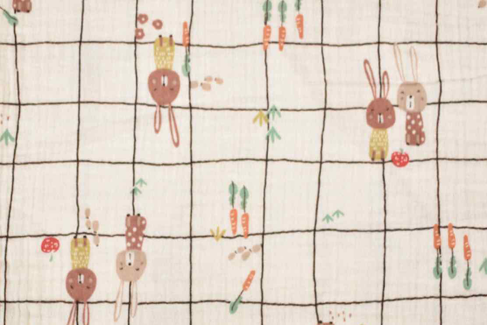 Dieser Musselin mit Hasen- und Karoprint verbindet verspielte Motive mit einem zeitlosen Muster und schafft so einen besonders harmonischen Look. Die niedlichen Hasen sorgen für einen kindgerechten Charme, während das Karodesign dem Stoff eine ruhige, ausgewogene Note verleiht – perfekt für moderne und zugleich gemütliche Nähideen.