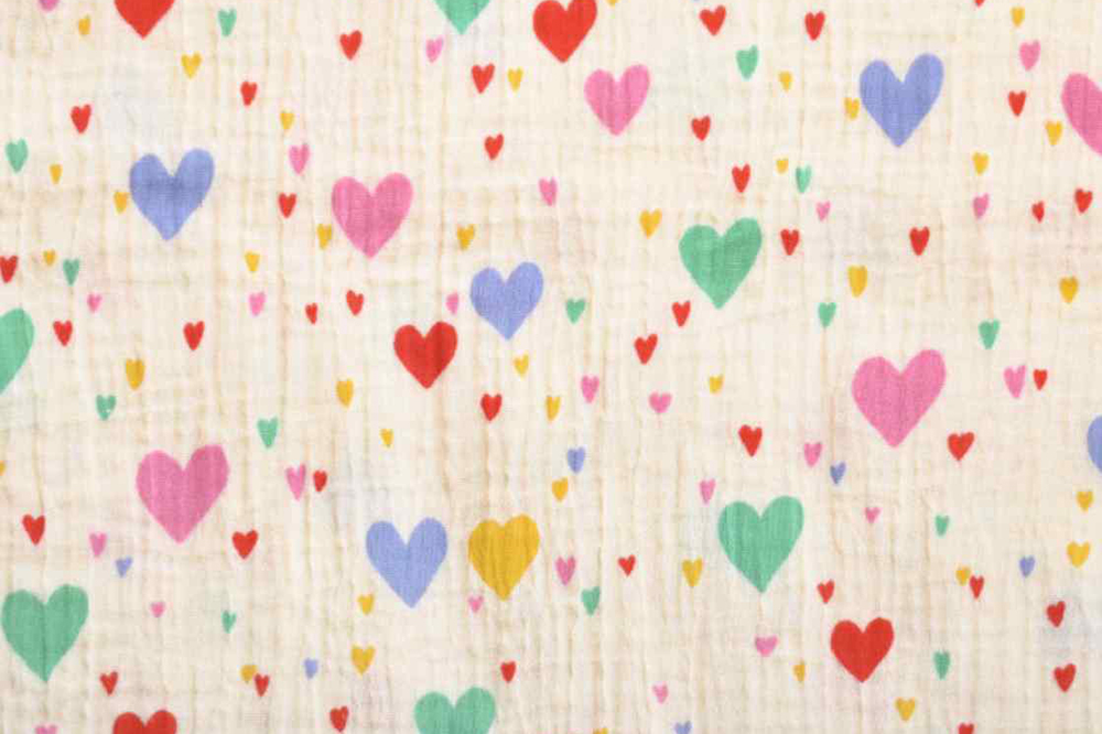 Dieser Musselin mit buntem Herz-Print bringt Farbe, Leichtigkeit und gute Laune in jedes Nähprojekt. Die fröhlichen Herzen verleihen dem Stoff eine verspielte, moderne Optik und machen ihn zu einer wunderbaren Wahl für kreative Designs mit liebevollem Charakter.